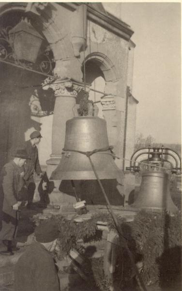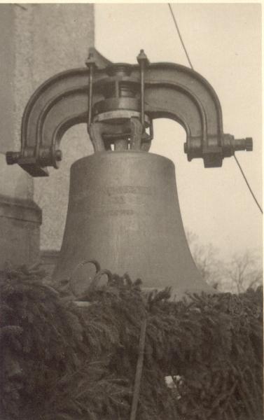 Am nächsten Tage wurden die Glocken eine nach der anderen von der Hoch- und Tiefbaufirma Flor und Nestler aus Königswalde auf den Turm gezogen.